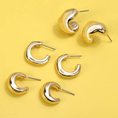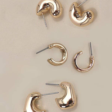 Bubble Huggie Hoop Trio Earring Set - Gold