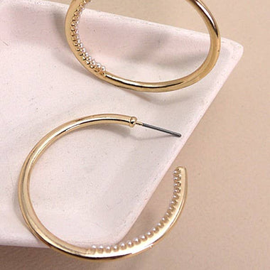 Classic Pearl on Inner Edge Hoop Earrings - Gold