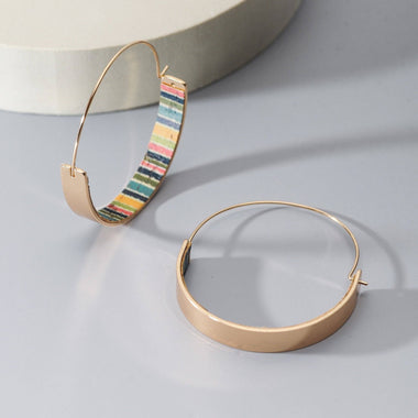 Cork Colorful Stripe Hoop Earrings - Gold