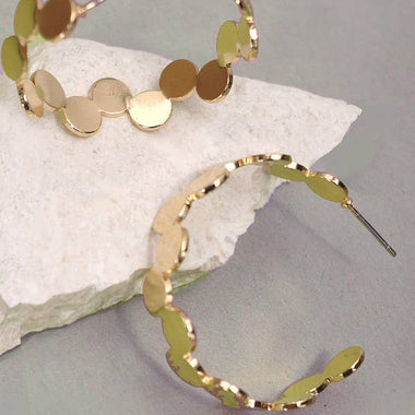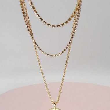 Double Rhinestone Coin Pendant Layer Necklace - Gold