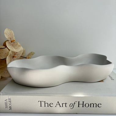 Wavy Oblong Concrete Tray - Off White