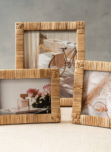 4x6 Woven Rattan Photo Frame w/ Corner Detail