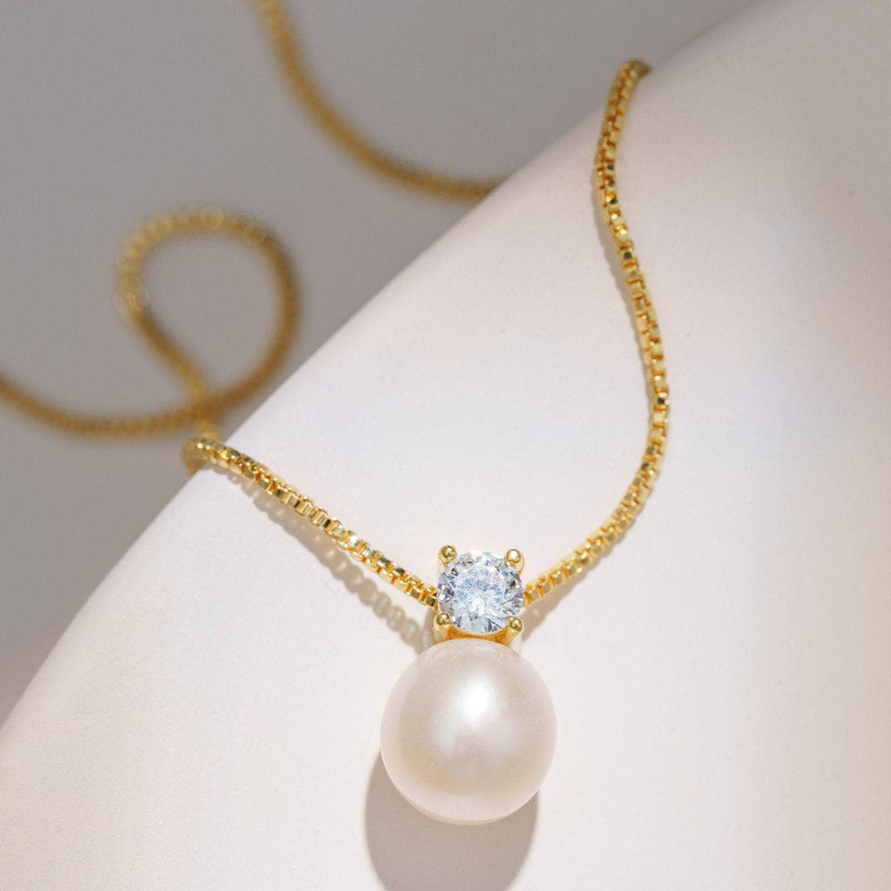 Materials: * 18K Gold plated Copper * Natural Freshwater Pearls Size: * 18 inches length Care: To maintain its luster, avoid contact with harsh chemicals. Store in a dry, cool place.