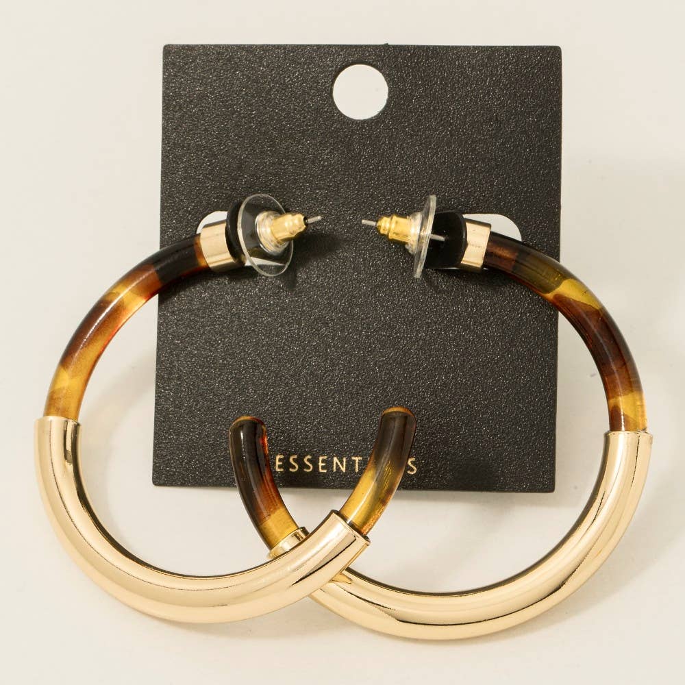 This classic pair of hoop earrings features a timeless gold dipped and tortoise shell tube style.