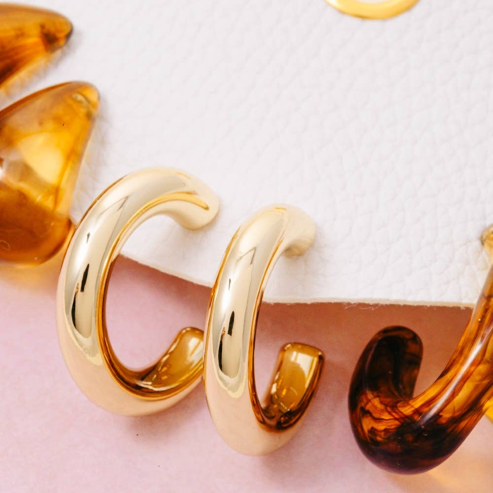 Metallic And Marble Resin Hoop Earrings Set - Gold