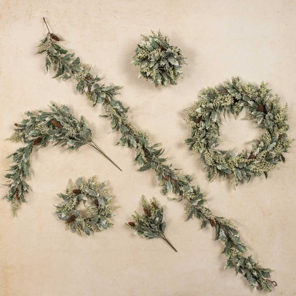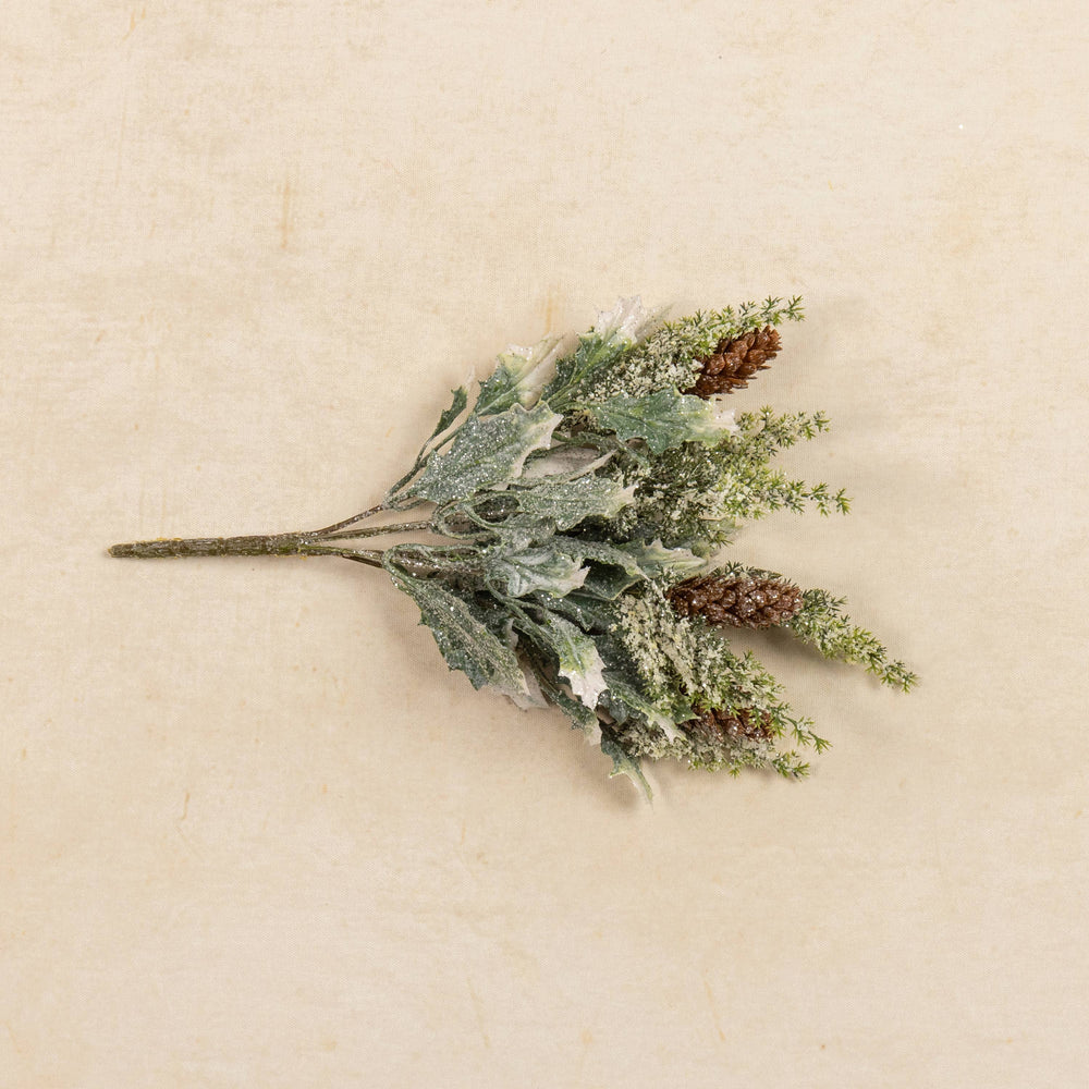 Embrace the festive spirit with our 12'' Frosted Holly with Pinecones Pick. It adds a touch of frosty allure and texture to your decor, and its depth of 12'' ensures a substantial, eye-catching presence.