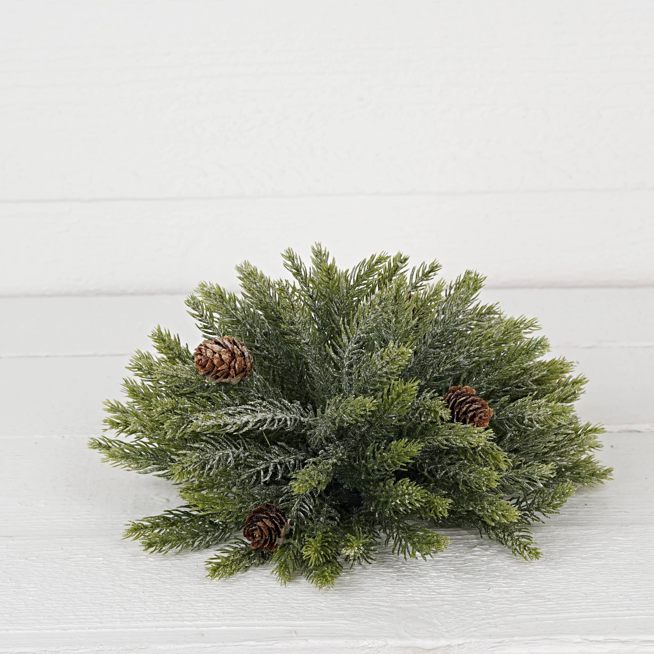 Transform your home into a winter wonderland with our Snowy Flocked Half Sphere. Half spheres are perfect for filling vases and urns by providing fullness and roundness without the need for a full ball. It features flocked pine greenery and miniature pinecones.