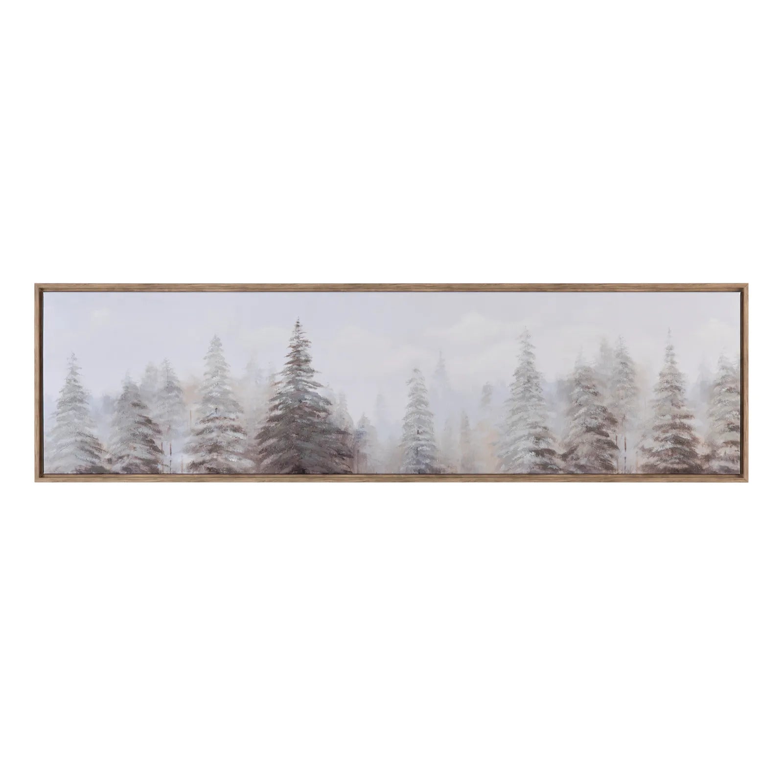 Introducing our impressive hand painted canvas painting featuring a serene pine tree forest, beautifully captured with hues of browns and greys. The painting showcases a unique perspective with the trees fading away in the background, creating a subtle yet mesmerizing effect. Crafted with utmost care and attention to detail, the painting has been enriched with heavy textured paint, giving it a touch of depth and character that's sure to impress. The brown rustic frame adds to the overall charm, making it the perfect addition to your living room, bedroom, or study. The size of the painting is just right to fill up any empty wall space, making it an excellent choice for over the couch or bed. It is a timeless masterpiece that will undoubtedly spark conversations and add a touch of elegance to any room.