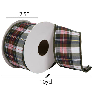 2.5" x 10 Yards Green Dupion Plaid Ribbon