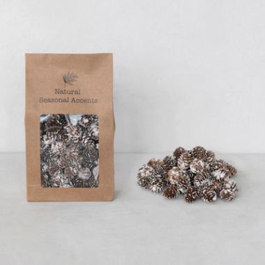 Dried Natural Pinecones in Printed Kraft Bag, Snow Finish
