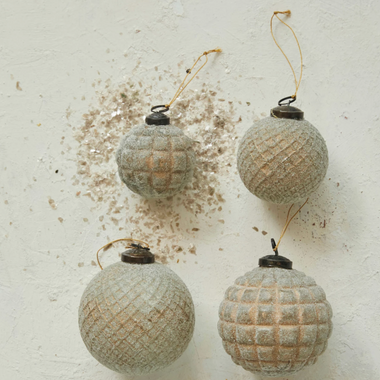 Embossed Recycled Glass Ball Ornaments, Frosted Copper Finish, 2 Styles