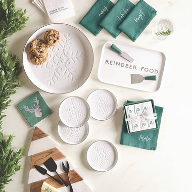 Ceramic Napkin Tray + Napkins - Snowflake
