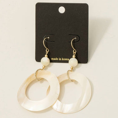 Mother Of Pearl Shell Circle Cutout Drop Earrings - Gold