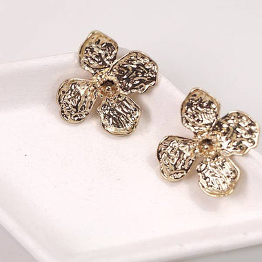 Hammered Flower Stud Earrings - Gold