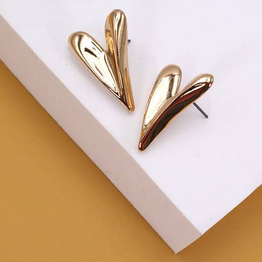 Modern Heart Stud Earrings - Gold