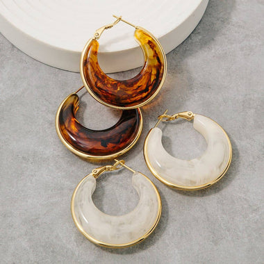 Gold Edge Graduated Acrylic Hoop Earrings - Ivory