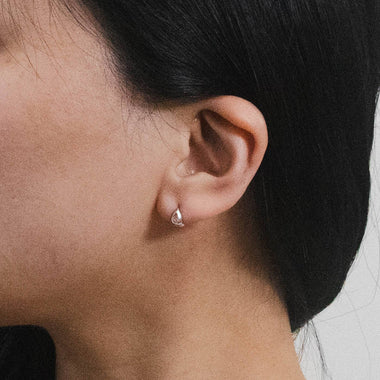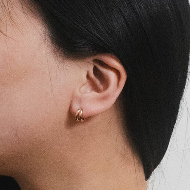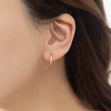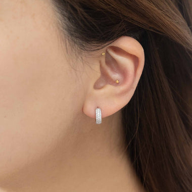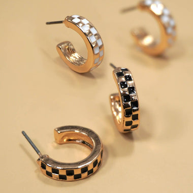 Mini Checker Hoop Huggie Earrings - Gold/White