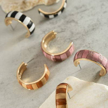 Faux Leather Two-Tone Hoop Earrings - Gold