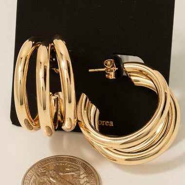 Faux Leather Two-Tone Hoop Earrings - Gold