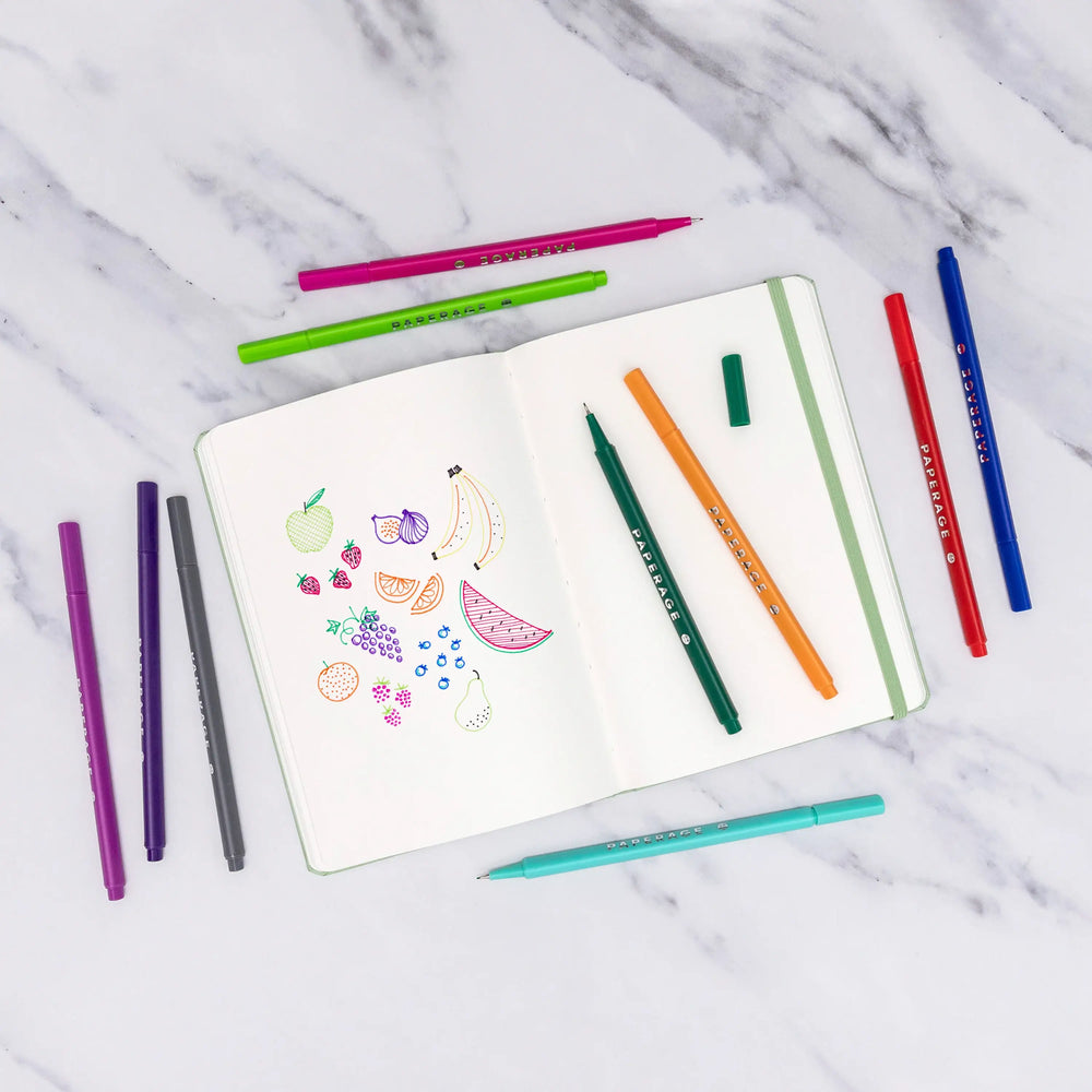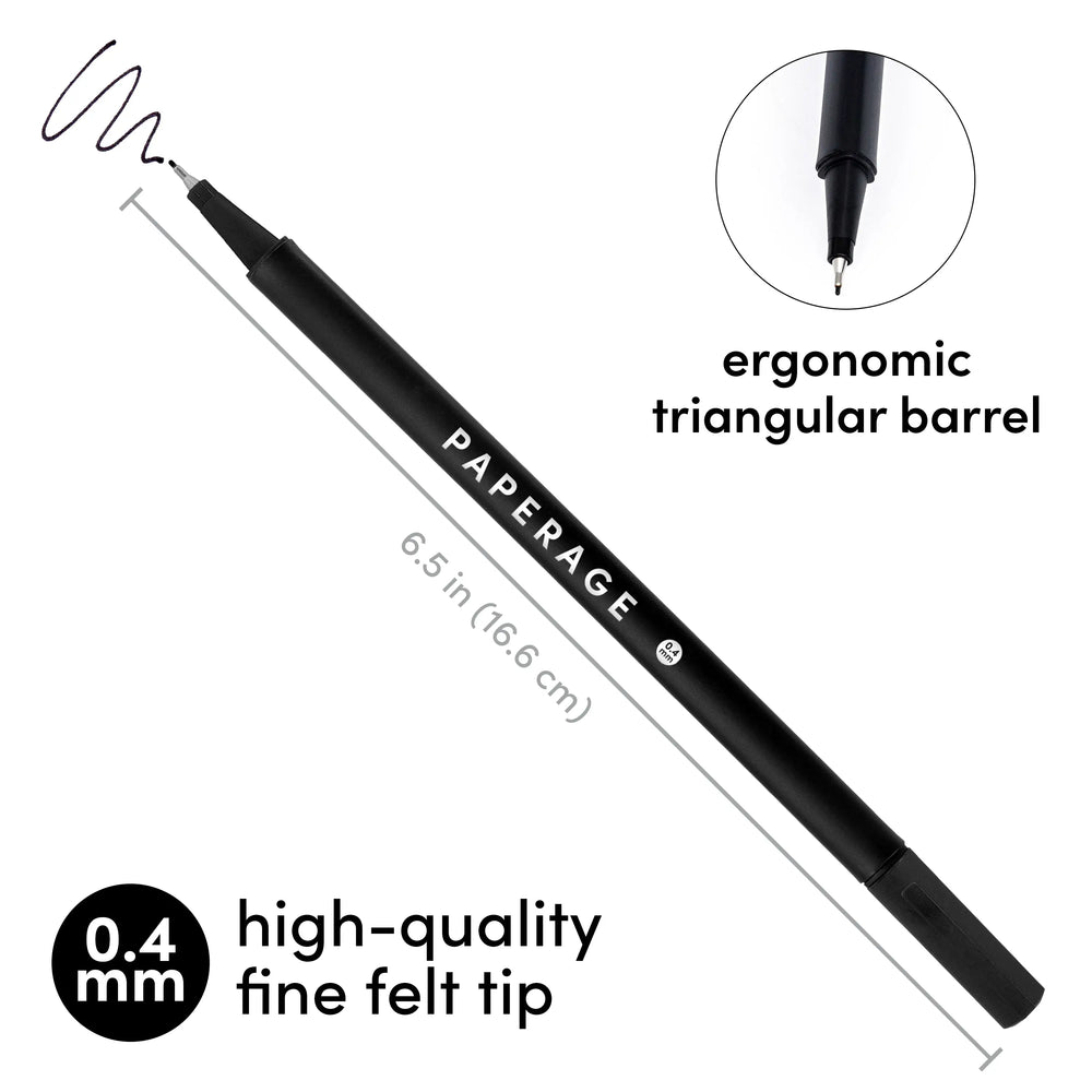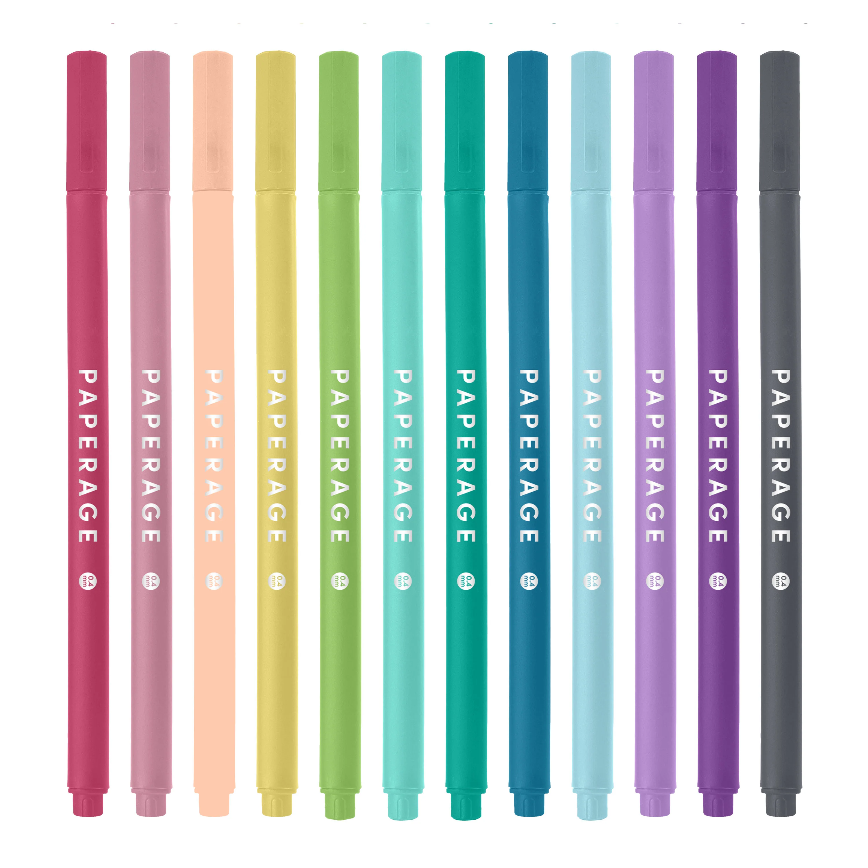 Bring color and precision to every page with this 12-piece Felt Tip Fine Line Marker Pen Set with case. Includes 12 fine point pens with 0.4mm felt tips, triangular ergonomic barrels, water-based ink, and a clear storage case. Perfect for students, artists and planners, they're great for gift giving, back to school, journaling, note-taking and creative projects.