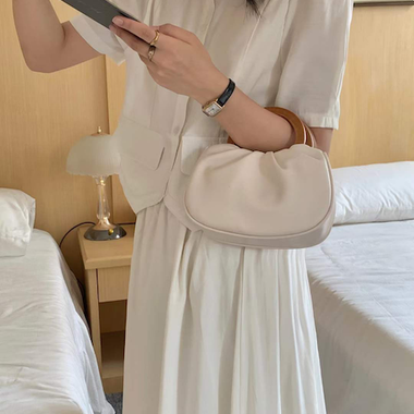 Mini Wood Handle Purse Crossbody Bag (Curve Bottom): Beige