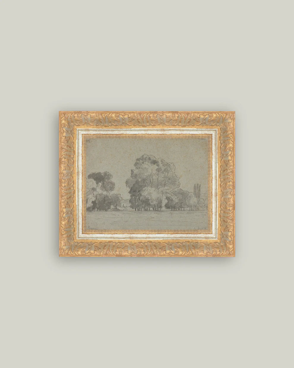 This vintage artwork is printed on raw canvas and placed in an antique frame for an authentic, timeless look.