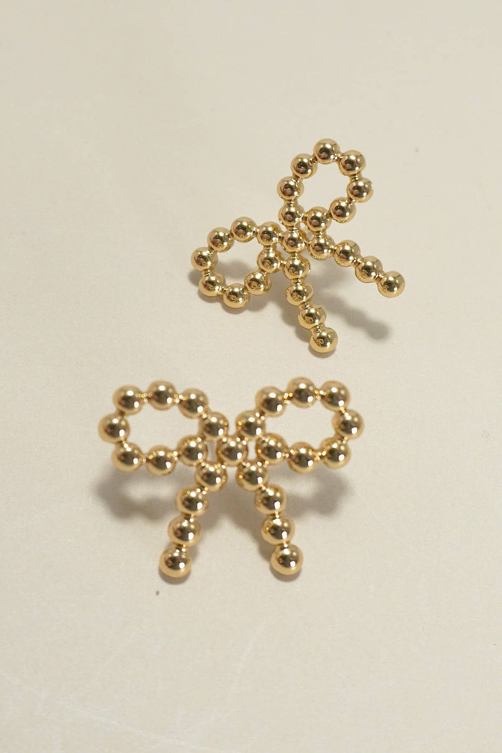 Bow Shaped Rope Ball Earrings - Gold