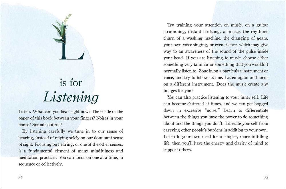 Appreciate the little things, believe in your personal power, and connect with nature using this simple and beautifully illustrated mindfulness primer. - L is for Listening - T is for Thankfulness - V is for Visualization From accepting your thoughts to zooming your focus in and out, The A to Z of Mindfulness will spark your curiosity about a wide variety of mindfulness subjects and encourage you to practice them with interactive prompts and reflective activities. Bright watercolor paintings and charming design make for a calming reading experience, while quotes and mantras provide the perfect dose of inspiration. Sometimes concrete and helpful, sometimes broad and motivational, The A to Z of Mindfulness is an unintimidating book guaranteed to fuel anyone’s mindfulness practice.