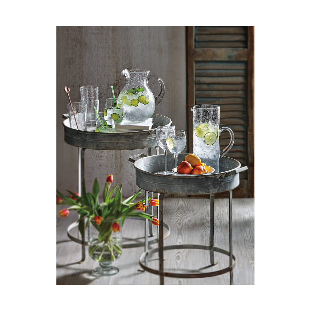 This artisan-blown clear bubble glass pitcher has a true classic charm. Each is handcrafted and designed with hundreds of miniature bubbles, forming unique patterns and optical effects. Perfect for everyday use or entertaining.