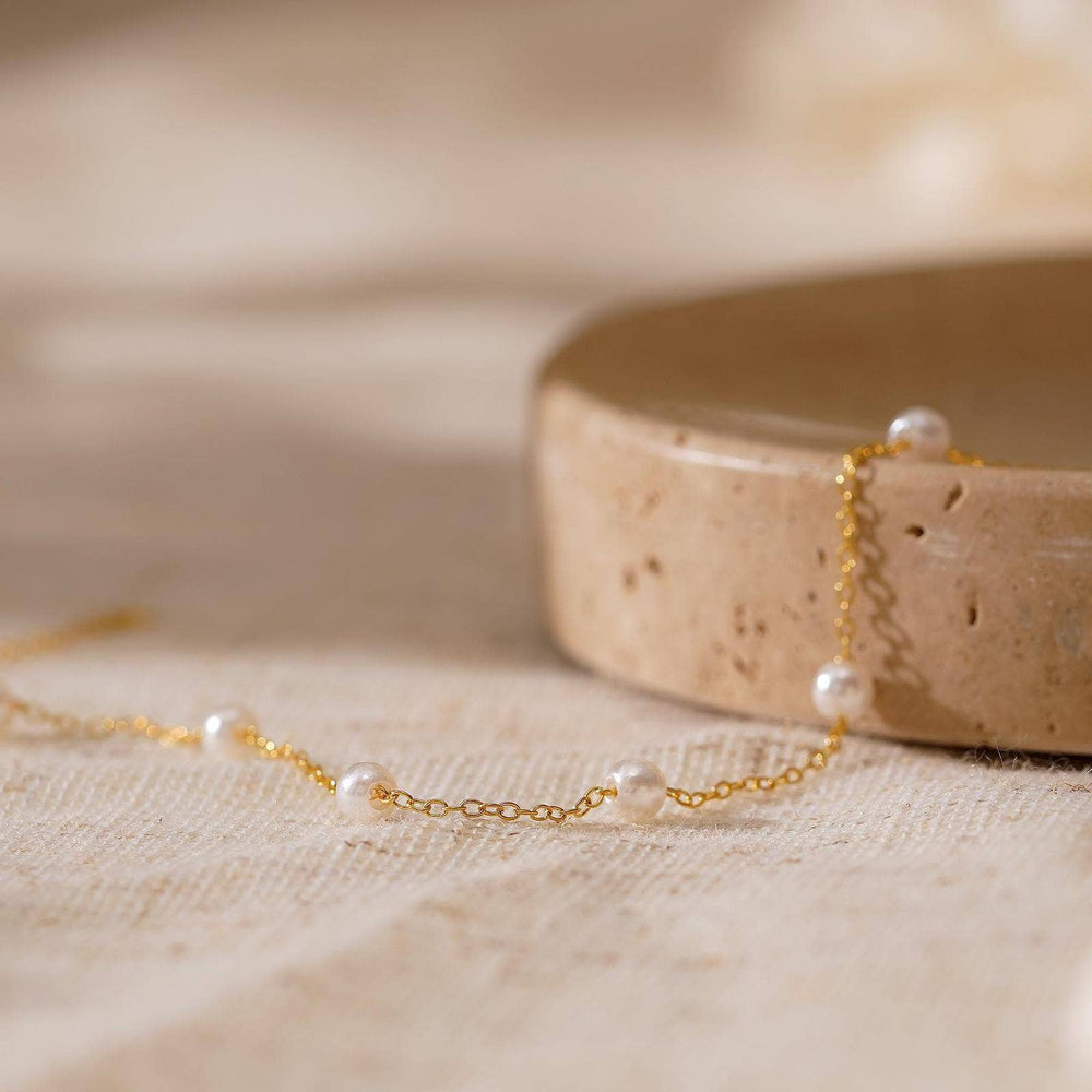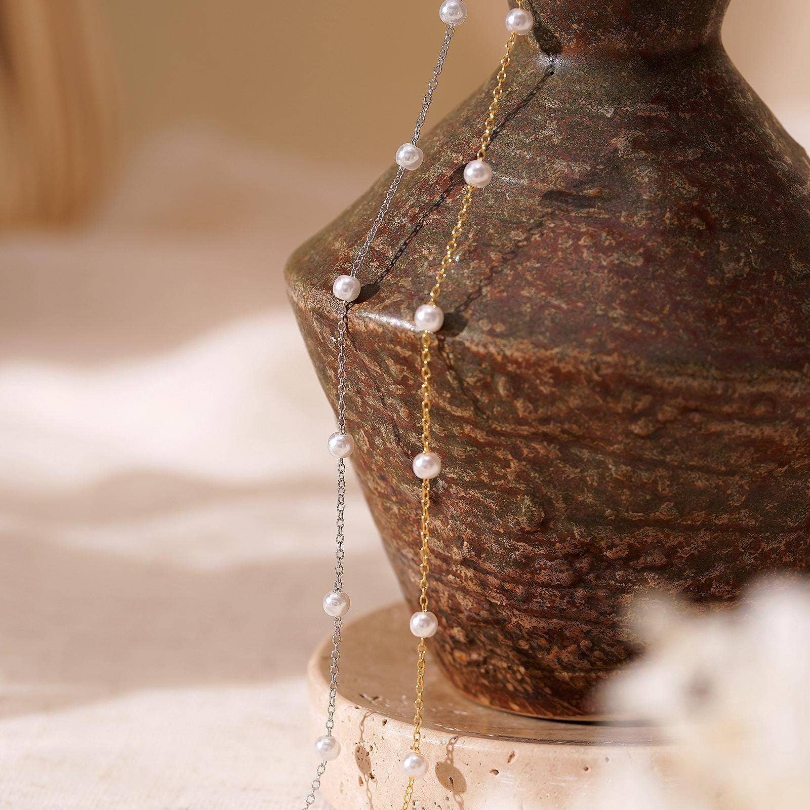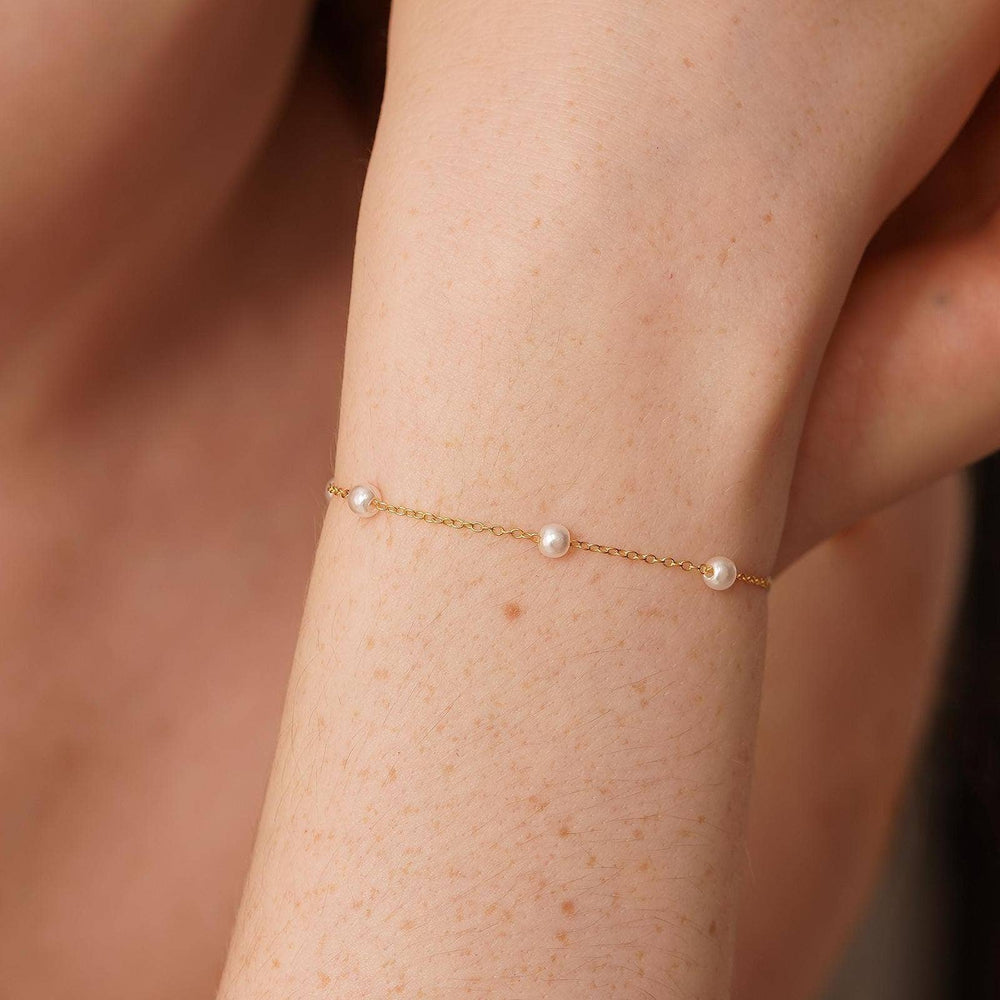 Dainty Freshwater Pearl Bead Bracelet - Silver