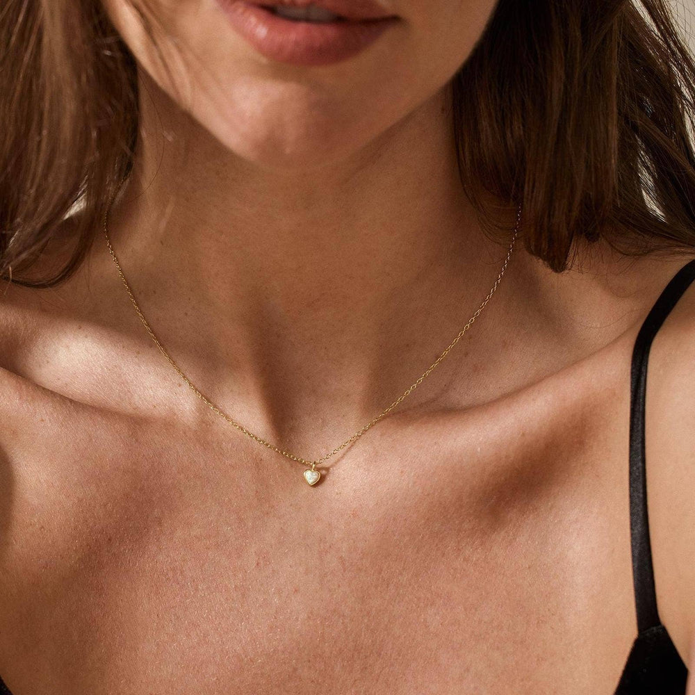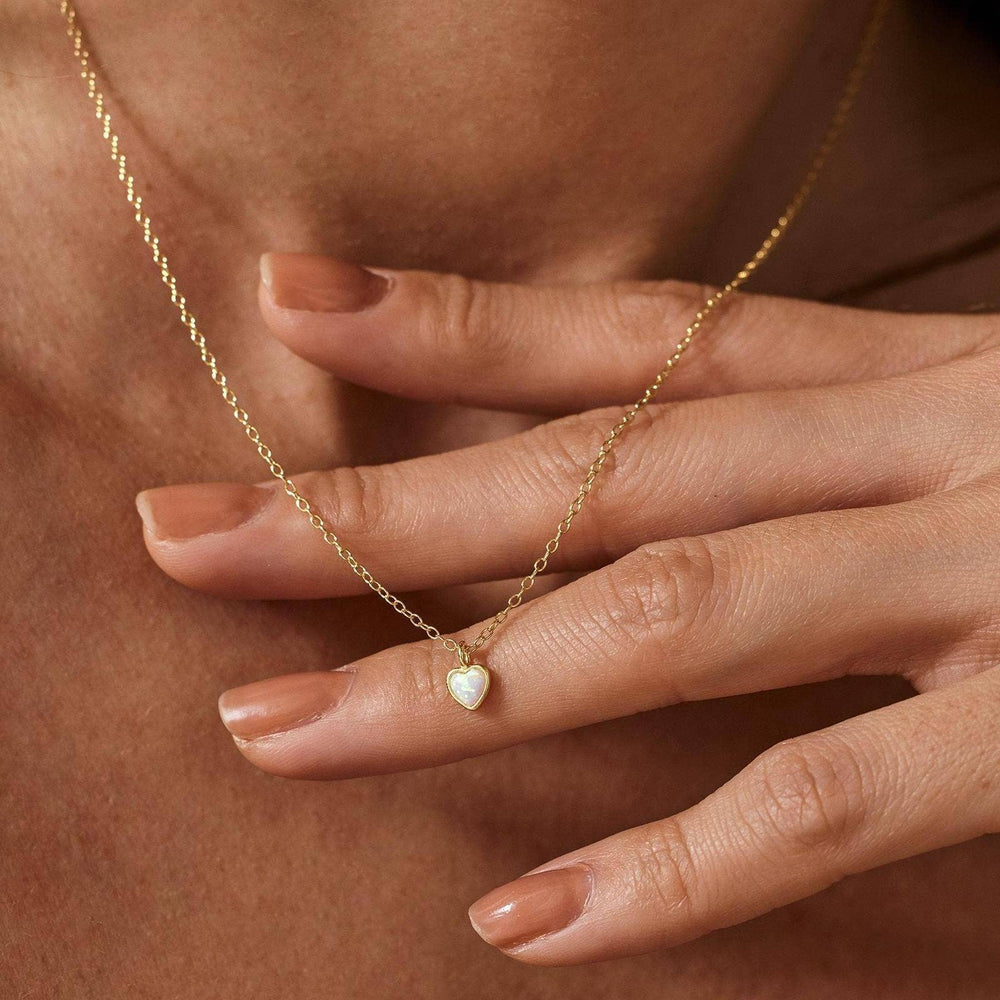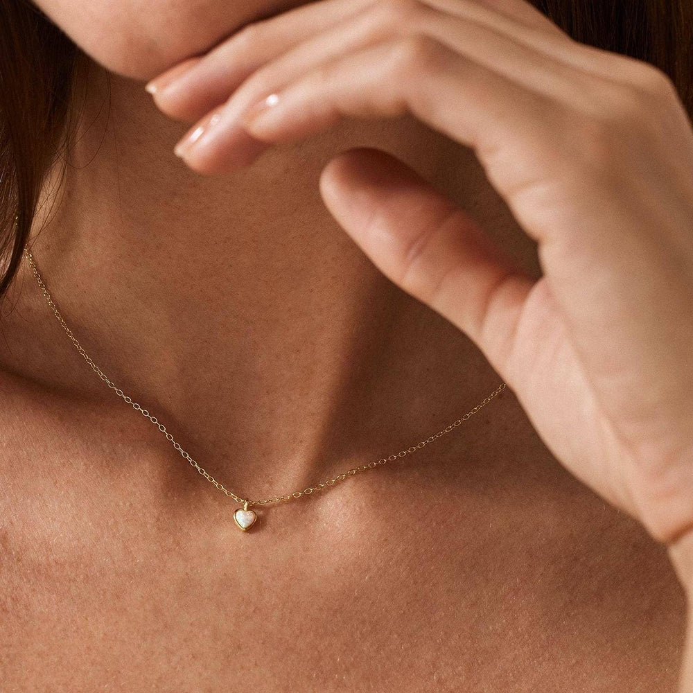 Dainty Opal Heart Pendant Necklace - Gold