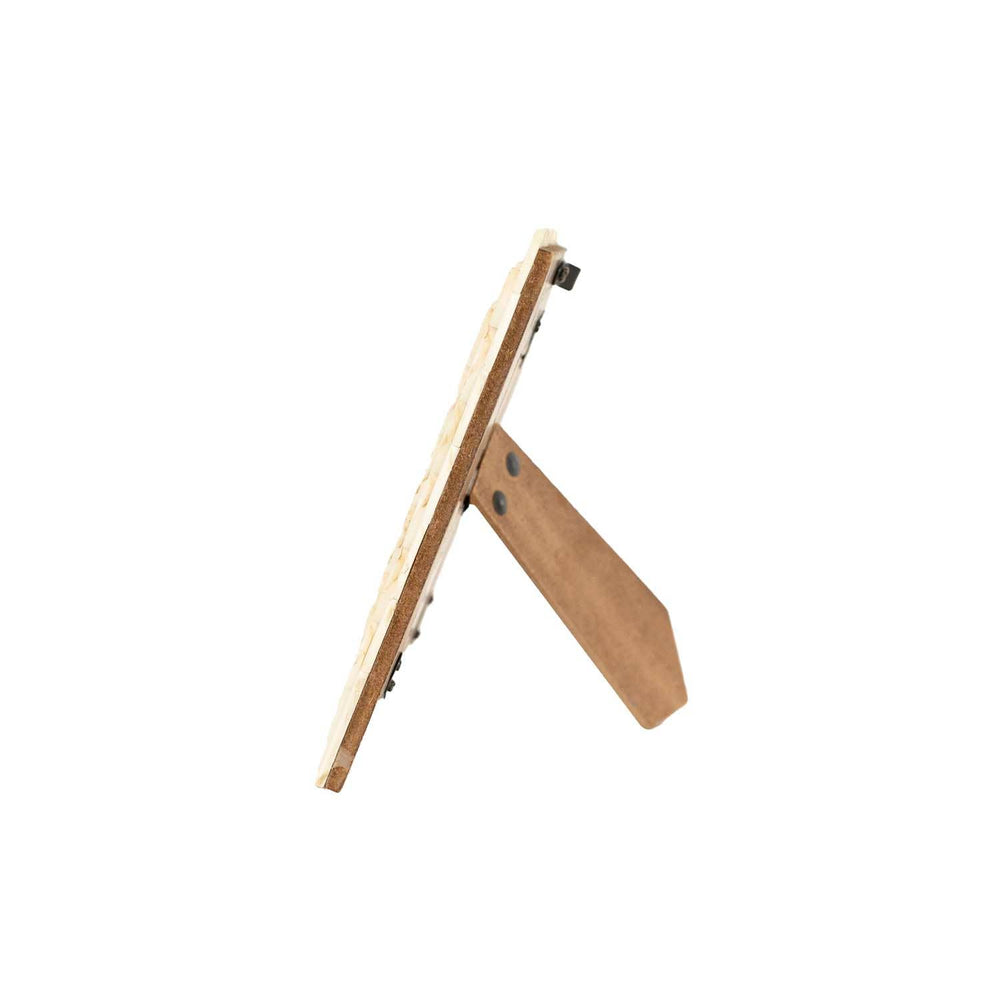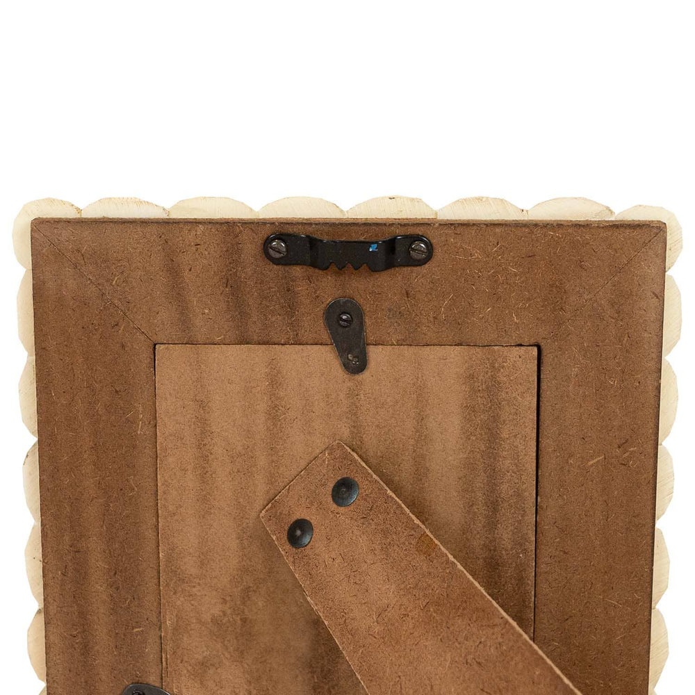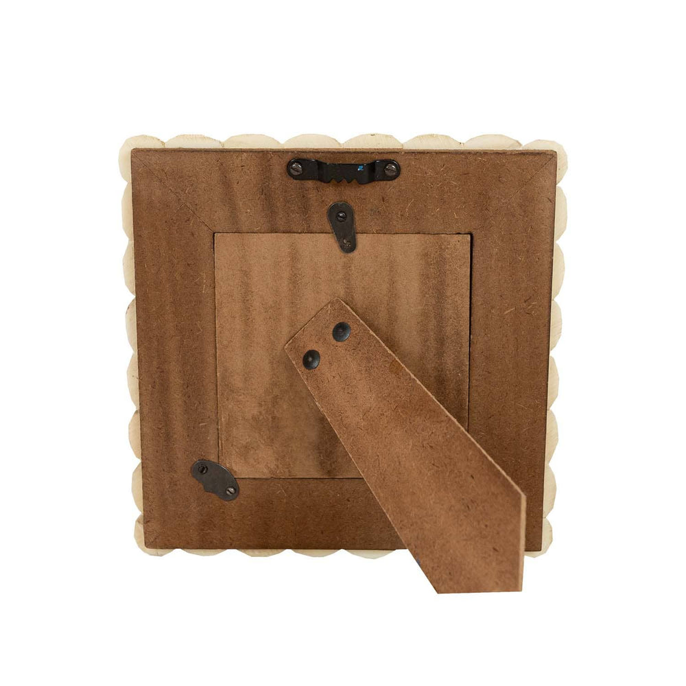 Made from finely crafted bone, this 4x4 square picture frame displays a stunning array of cream tones, varying subtly across its surface to offer a natural, organic feel. Featuring three layers of delicately scalloped edges that create a dimensional border for your photograph, this photo frame provides an elegant, vintage look that pairs well with cottage decor styles. Easel back and 1 sawtooth hanger for tabletop or hanging options.