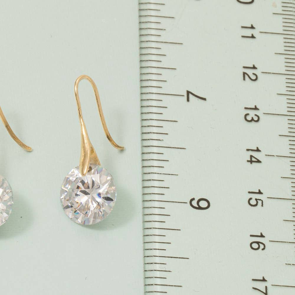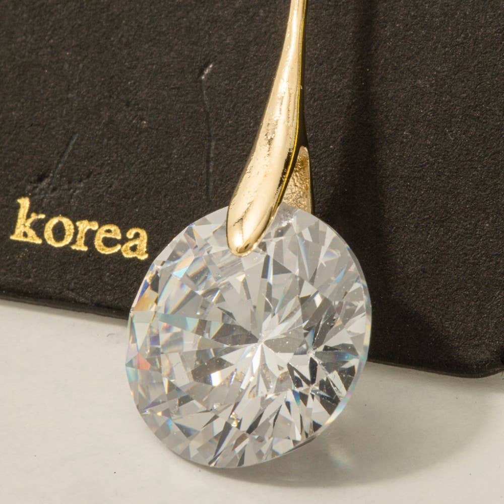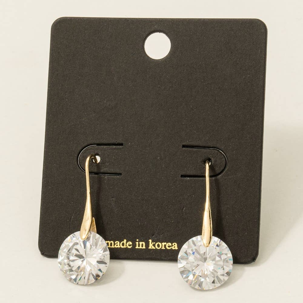 A classic design with a contemporary twist, this pair of dangle earrings displays a unique large cubic zirconia gem hook design.  A sparkling round brilliant cut solitaire stone set in the middle gives these earrings a classic, yet glamorous appeal.