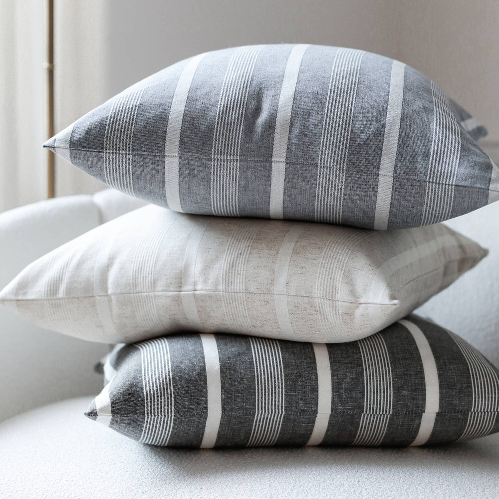 Our Addison stripe pillow cover features a classic striped pattern in a beautiful navy color way. The hidden zipper closure makes changing pillow covers simple. Crafted from a high-quality cotton/linen blend fabric for a soft yet durable feel. Perfect for layering or as a standalone statement. All pillow covers are custom designed and handcrafted from the highest quality materials.