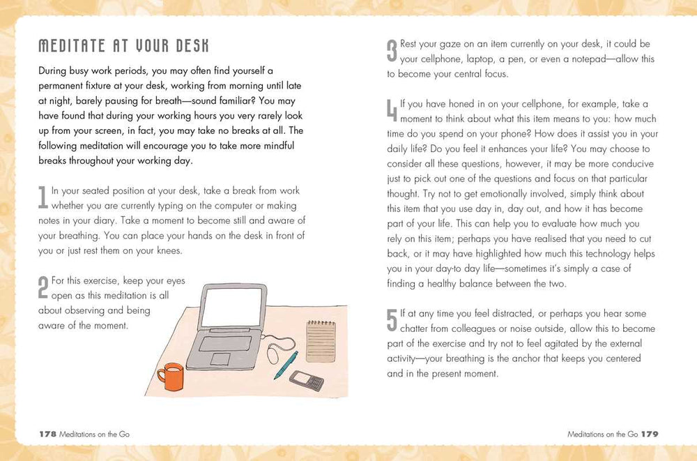 An EASY approach to meditation that will help you get started right here, right now, with small, BITE-SIZED sessions that realistically fit into your daily schedule. Meditation keeps you grounded in the present, helping you to cultivate a better understanding of who you are in the HERE AND NOW. Stephanie Brookes shows you how to incorporate simple techniques into your busy, non-stop life to increase self-awareness, bring objectivity and clarity to your thoughts and actions, improve your relationships, and alleviate stress and anxiety. Including meditations for a wide range of situations, from self-healing to meditating with a partner and meditations on the go, this little guide has all the tools you need find a greater appreciation of your inner self and life in general. Develop bespoke meditations that work for you, from a daily five-minute meditation to simply integrating mindfulness into your life, to instantly feel more comfortable and relaxed.