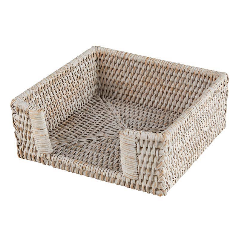 Neatly contain your cocktail napkins in casual, classic whitewashed rattan style. 100% handmade and woven into tight, uniform bands for long-lasting quality.