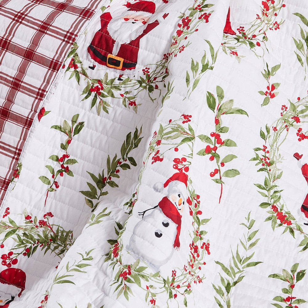 The Pine & Plaid Reversible Holiday Throw is inspired by the joy and fun of the Christmas holidays. This Christmas throw blanket features cheerful wreath portraits of holiday icons on the front, reversing to a small red and white plaid on the back. The Throw has a microfiber front and back, filled with a cotton-rich filler, and is machine washable. Snuggle up and enjoy this for years to come!