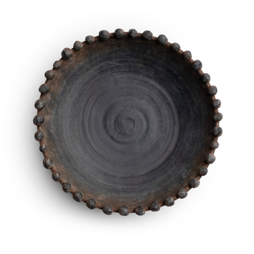 The organic shape and earthenware design make the Raleigh Bowl the perfect receptacle for those looking to add a rustic accent to their home. Finished with an intriguing array of hand-shaped ceramic balls around the rim, this bowl is sure to impress.