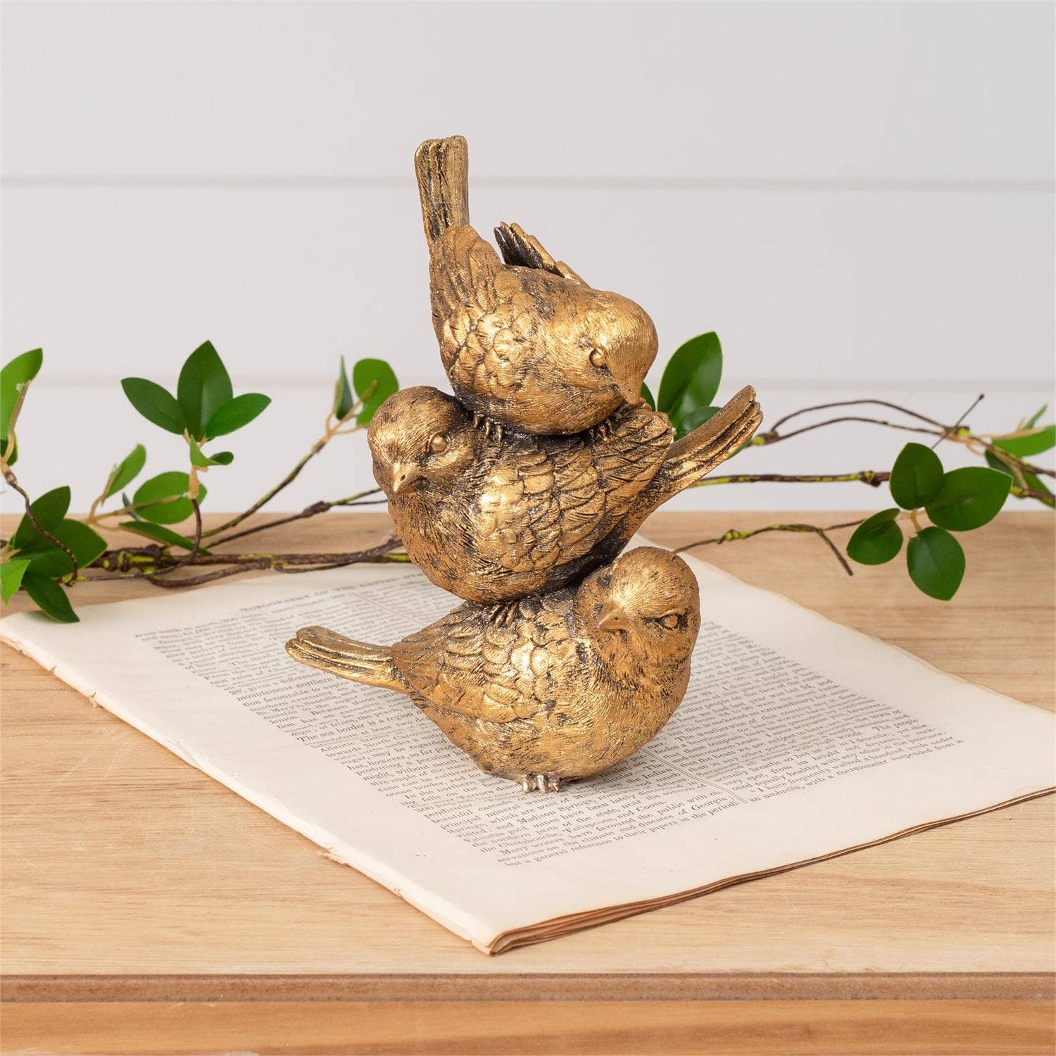Enhance your space with the Stacked Gold Tone Bird Figurine, a unique decor piece that exudes elegance and charm. Featuring a trio of intricately crafted birds stacked in a vertical arrangement, this figurine showcases quality craftsmanship and a sleek gold-tone finish. Its modern yet timeless design makes it an ideal accent for shelves, mantels, or side tables. Perfect for adding a touch of sophistication and nature-inspired artistry to any room.