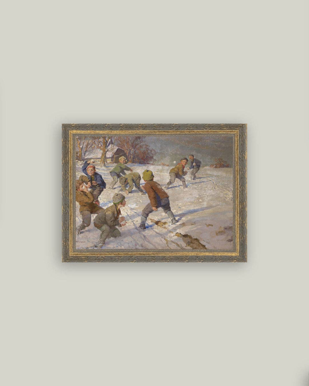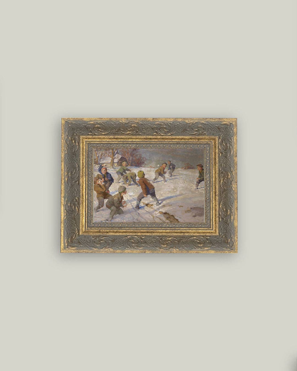 Capture the playful charm of winter with The Snowball Fight, a delightful 1800s artwork by Fritz Freund. This 8x10 framed print brings a touch of nostalgia and whimsy to your walls, showcasing children in a joyful snowy scene that never goes out of style.